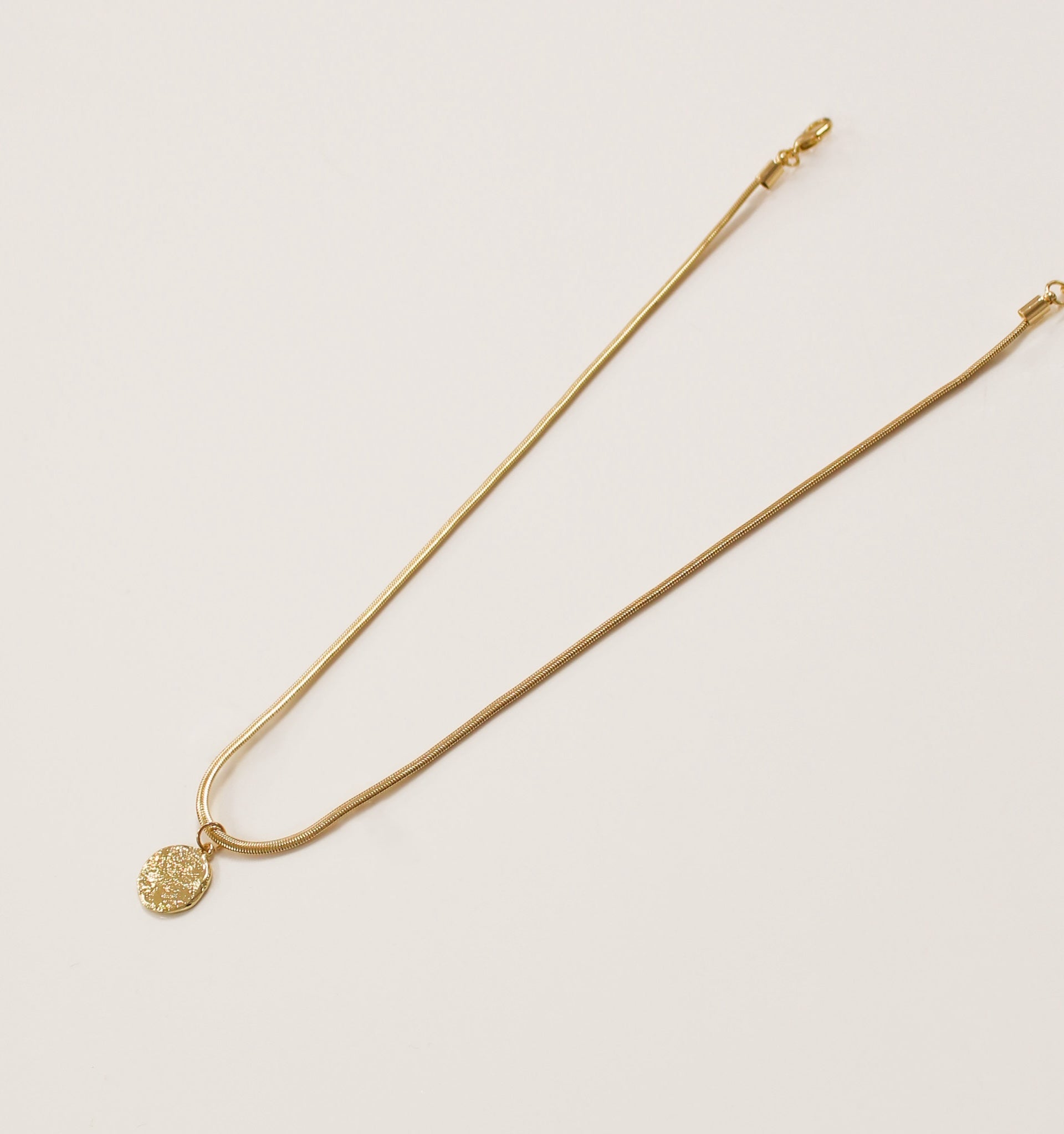 Chunky Gold Snake Chain Necklace | Hammered Medallion