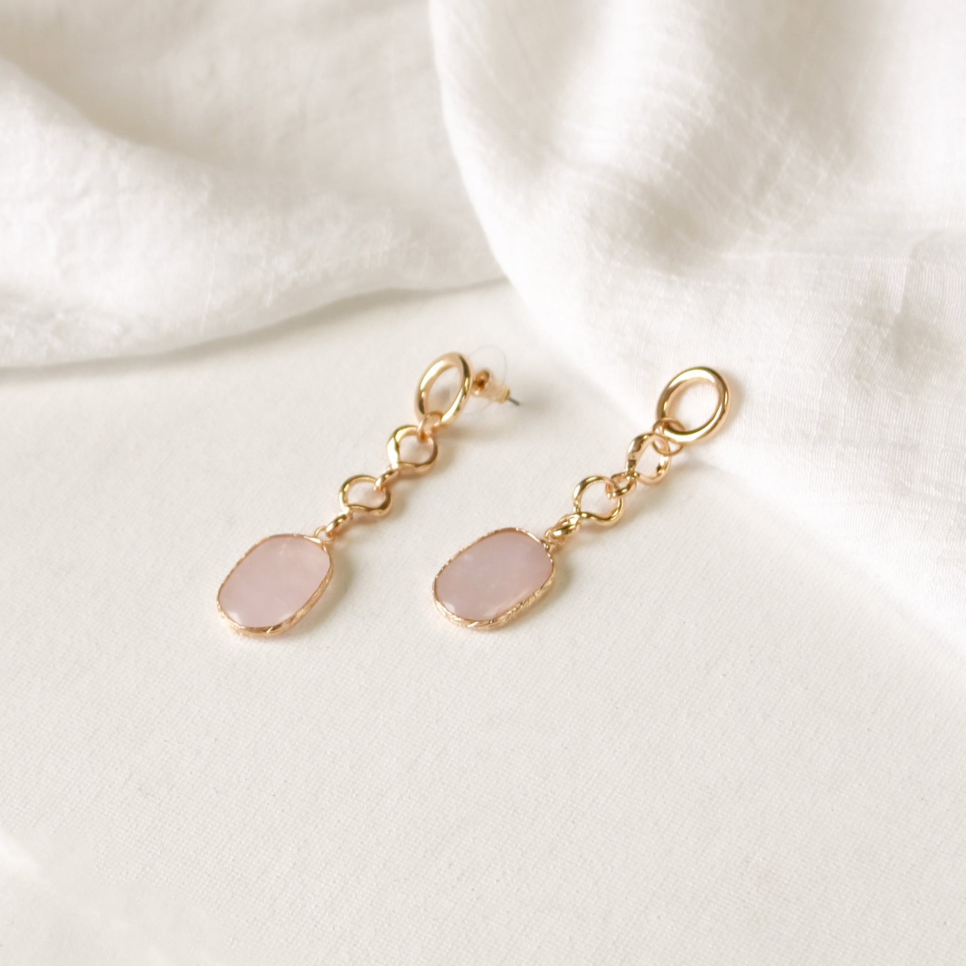 Design: Dangling Earrings with Blush Stone, Summer Jewelry, Lightweight Statement Earrings, Perfect for Layering or Standalone Wear